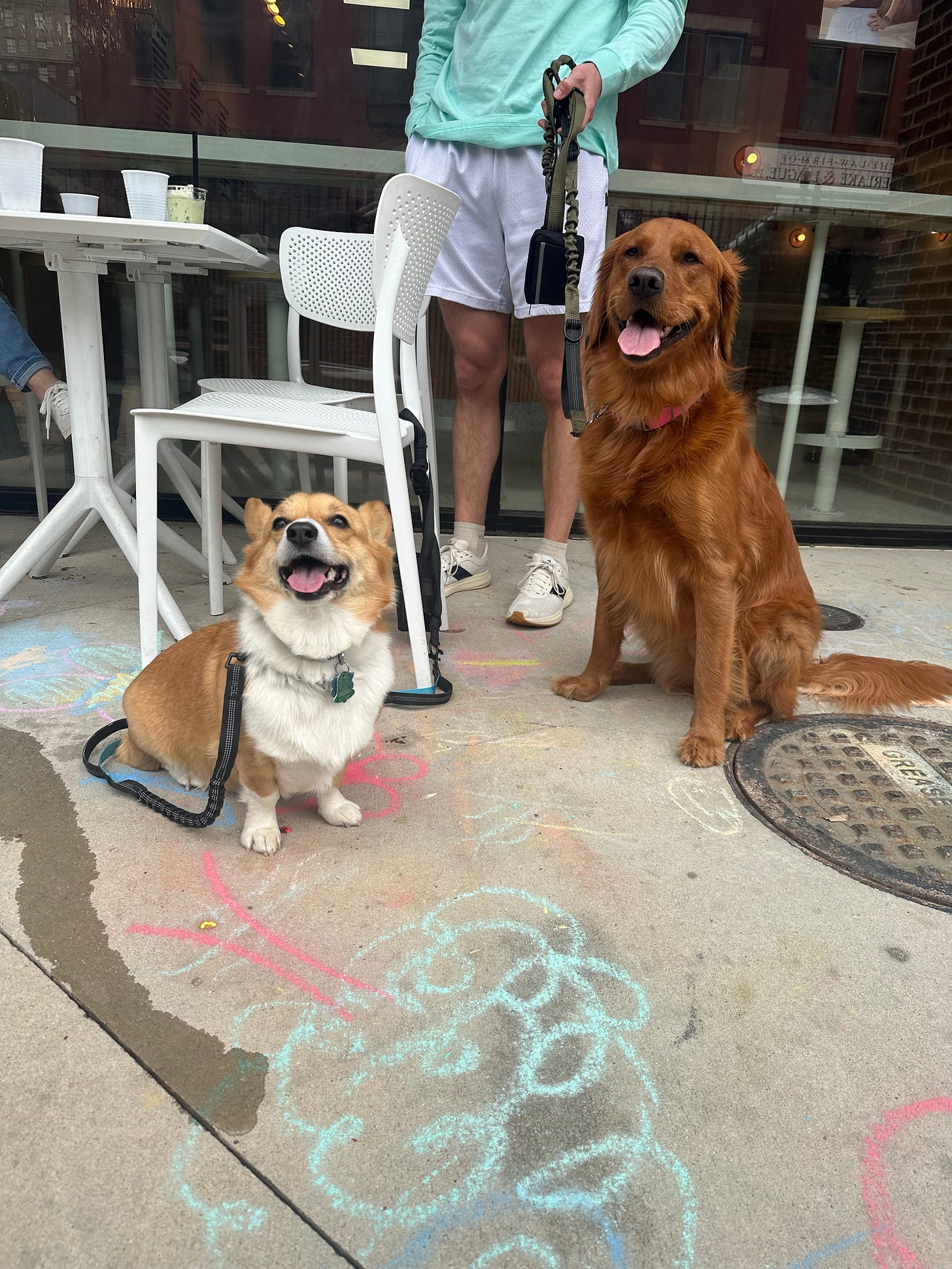Please enjoy this photo of Rosie (my dog) and Ellie (my parents corgi) awaiting their ‘pup-cup’ at Big Spoon Creamery this weekend.