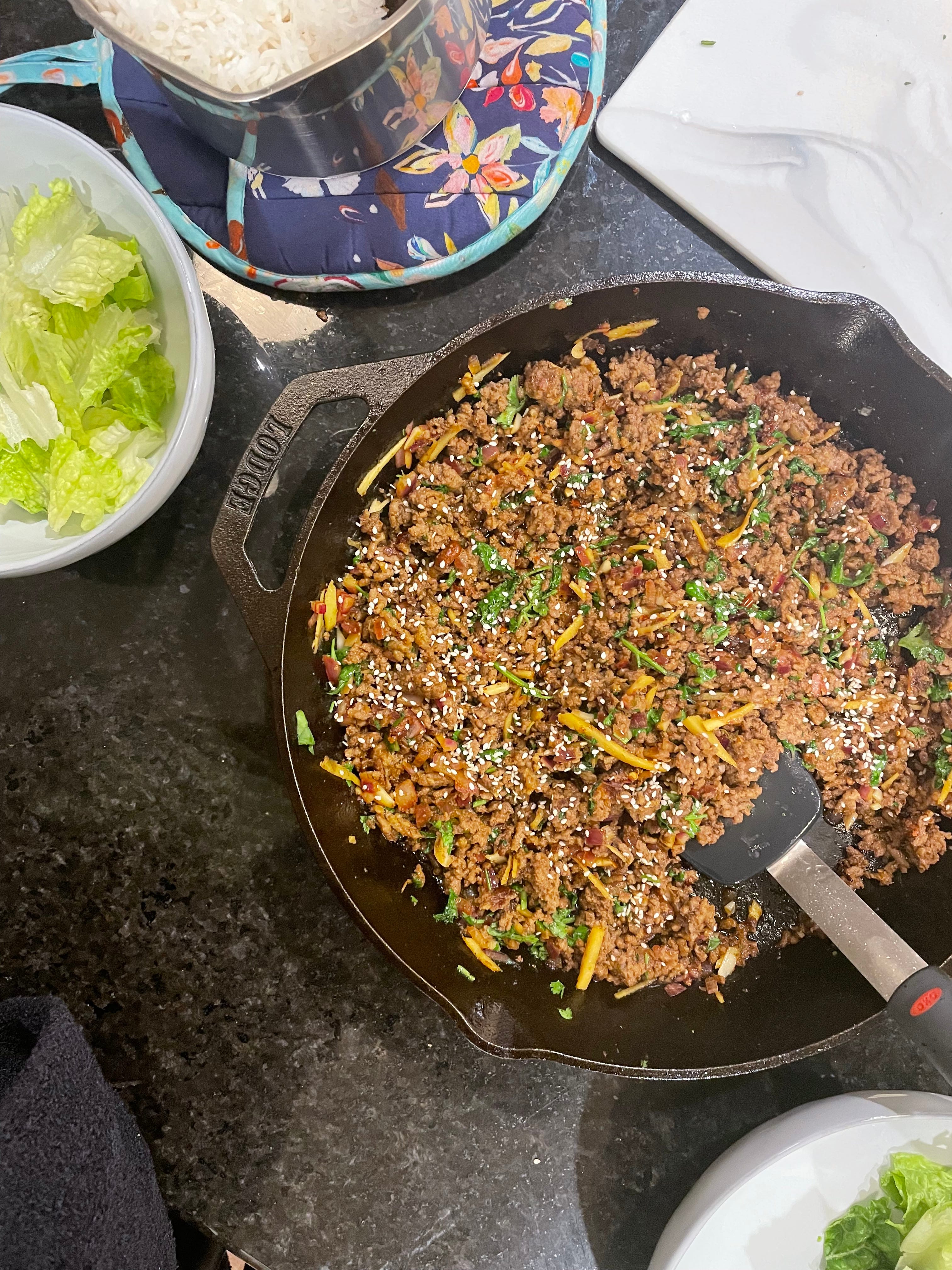 One thing I don’t love to reheat is chicken. If we cook the chicken ahead of time I will likely eat it cold or we will prep ahead (cut and season) and then cook the night we are using, but doing so usually ensures more dirty dishes to clean up afterwards. However, one thing that’s not gross heated up? Ground beef! It’s something you can make ahead, heat up as needed and even freeze if you have excess. For whatever reason, I sometimes have a hard time getting creative with ground beef - seems most recipes using ground beef revolve around some kind of Mexican dish (which is fine, but sometimes I want something different). When grocery shopping, I usually look for an 80/20 ratio. Costco has a great organic 3-pack, Fresh Market has a special on Tuesdays (3.99/lb beef and chicken) or I will check Whole Foods and they will occasionally run sales on their grass-fed beef so I will stock up and keep in the freezer (sorry to my readers that don’t have the freezer space for this). It’s also worth noting my weeknight meals are almost always “bowls” - so if that’s not your jam then this post is not for you.